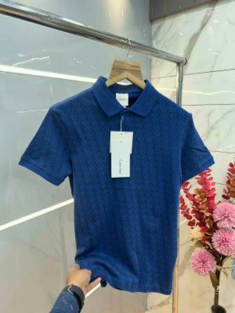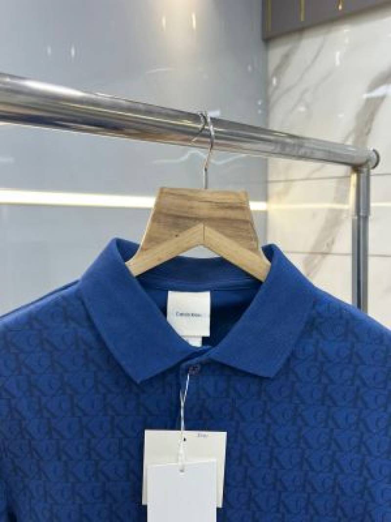Calvin Klei n Blue Premium 240 gsm interlock compact cotton fabric Polo Tshirt with Allover Monogram Print 3734