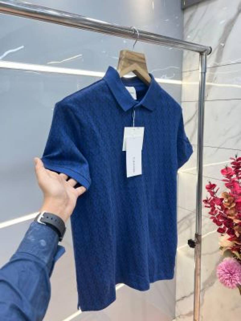 Lacost e Navy Premium Cotton Pique fabric Polo Tshirt with Collar Design and Embroidered Logo 3533